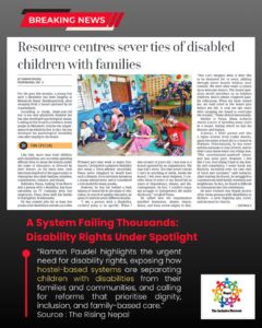 As part of its ongoing #DeinstitutionalizationCampaign, Disability Human Rights Promotion Society (DHRPS) Nepal organized a powerful roundtable discussion aimed at validating the lived realities of children with disabilities, orphans, and street-connected children. The discussion brought together Youth Ambassadors and community voices to examine the root causes that continue to push children into institutional care. The […]